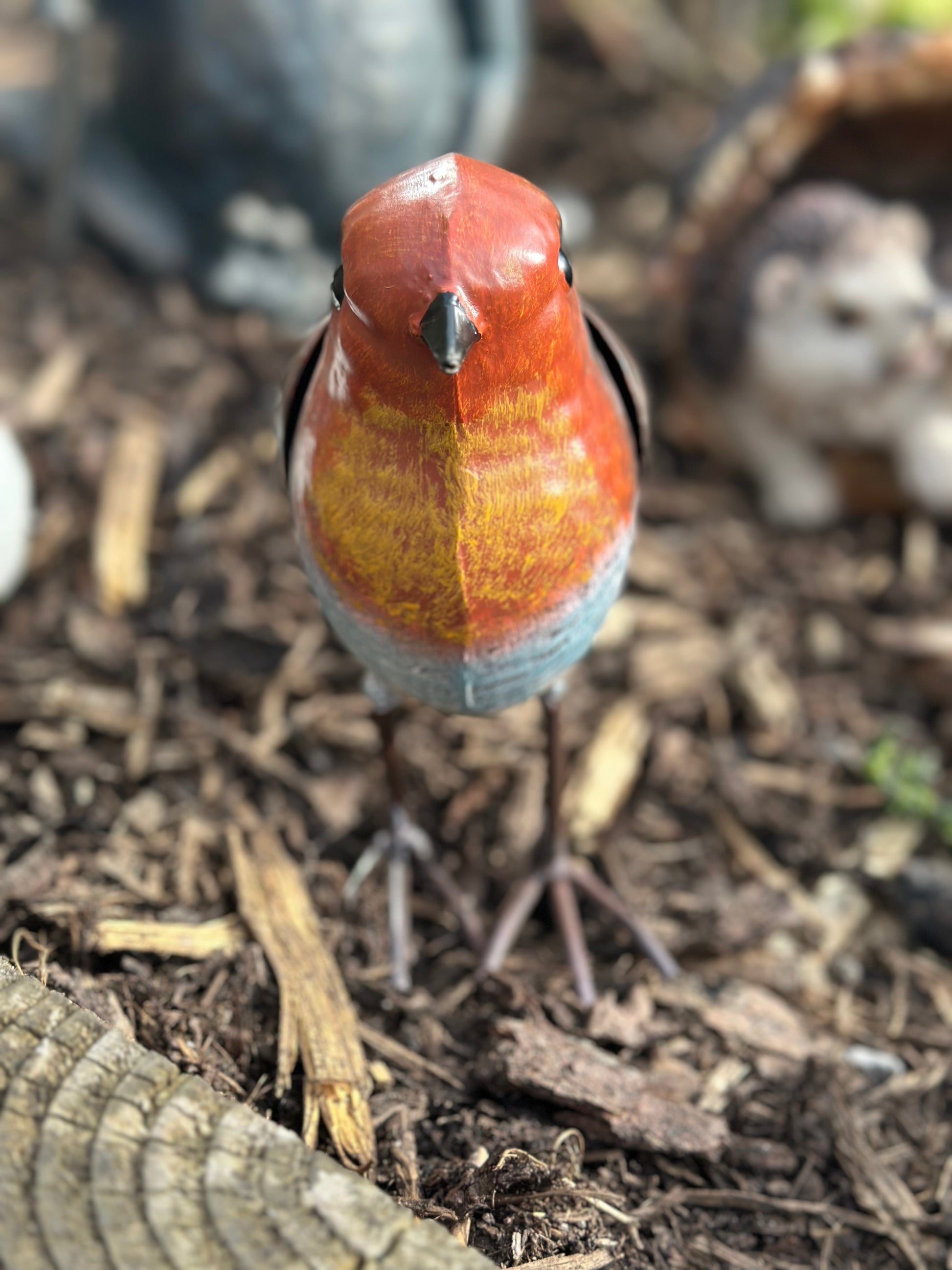 Add a pop of color to your garden with our beautiful 18 x 8 x 16 inch metal Robin statue. Its vibrant hues and life-like design will bring joy and energy to any outdoor space.