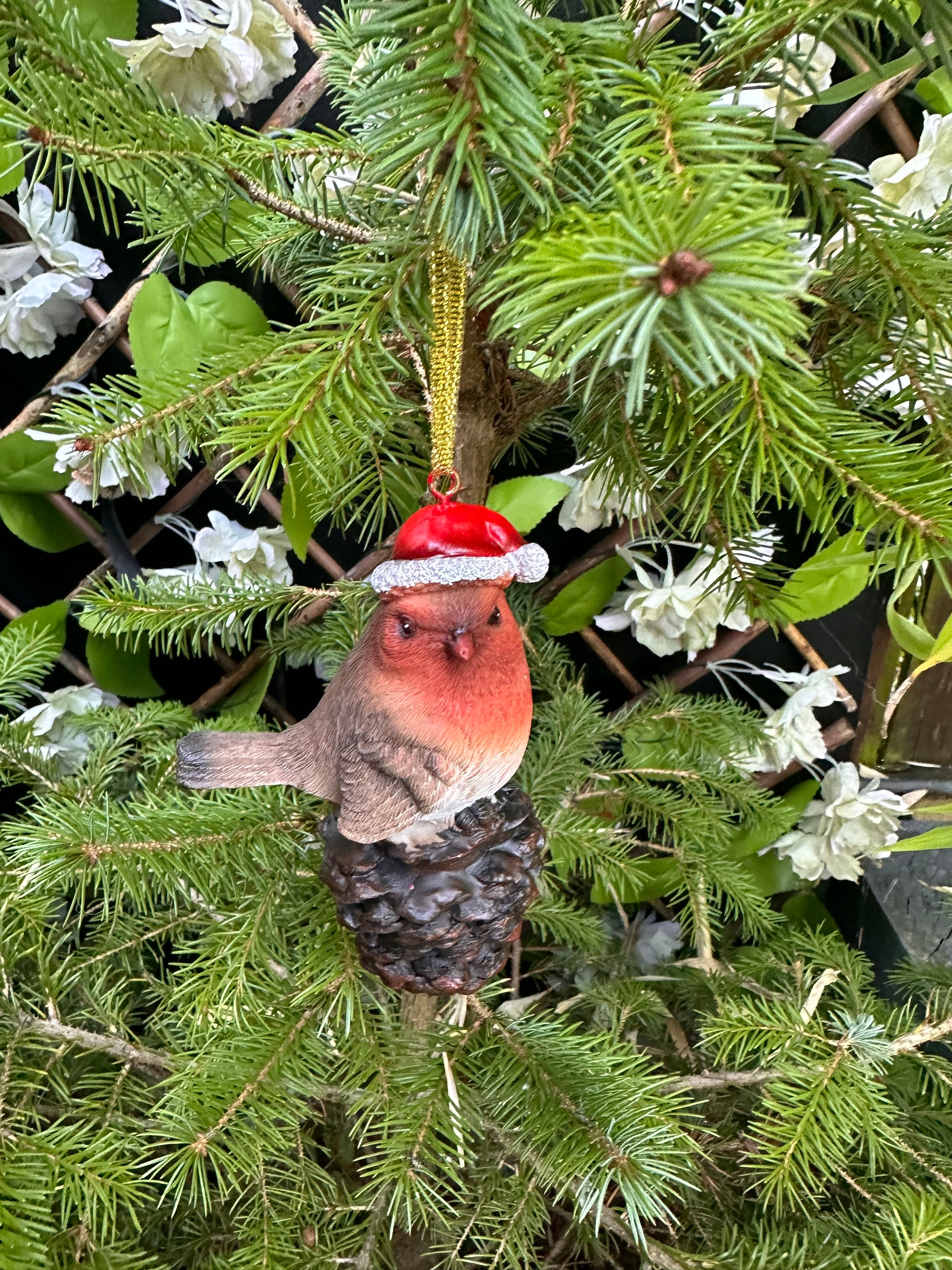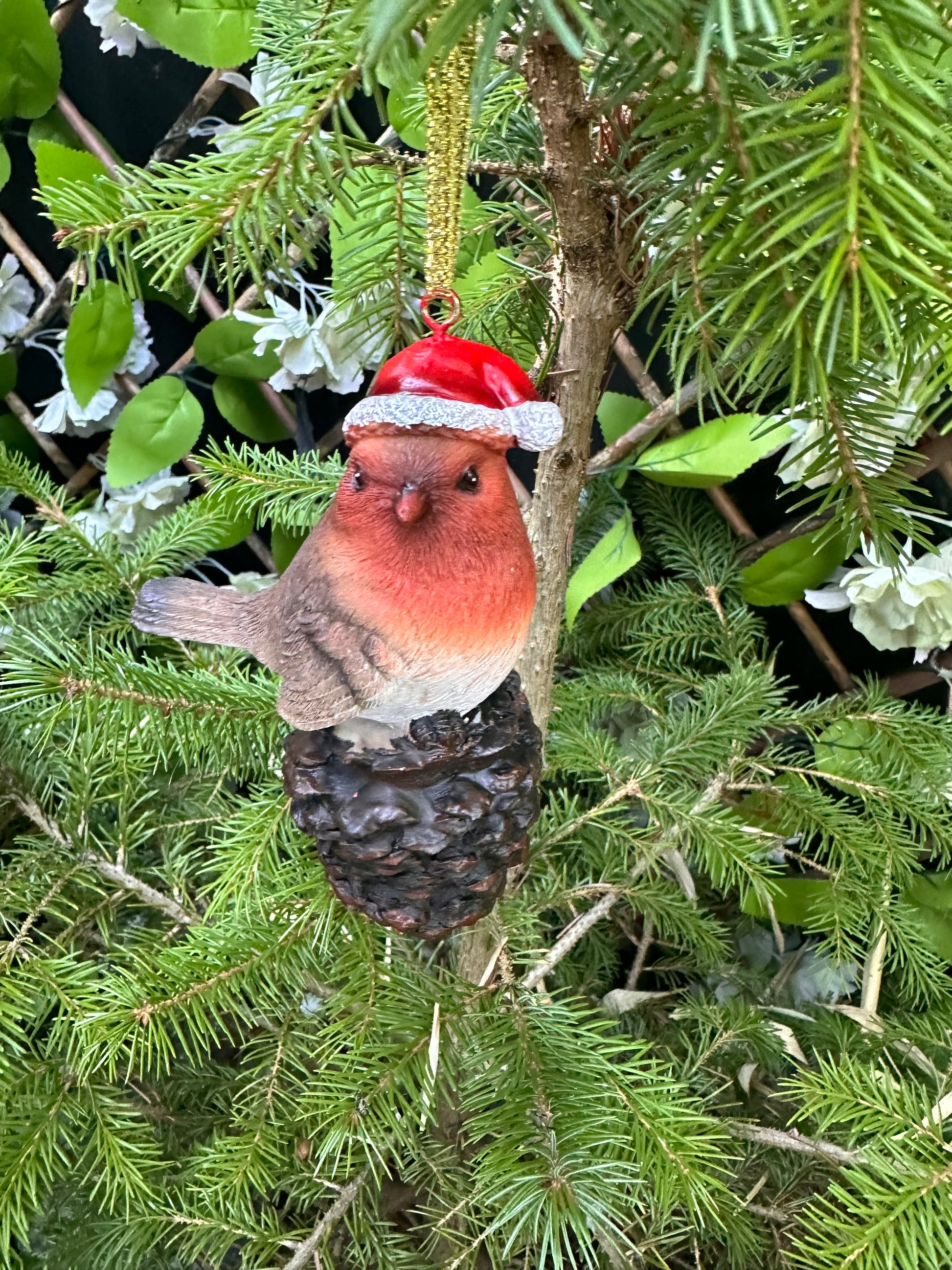 Gorgeous decorative Robin On a acorn hanging on a ribbon to hang on your Christmas tree…