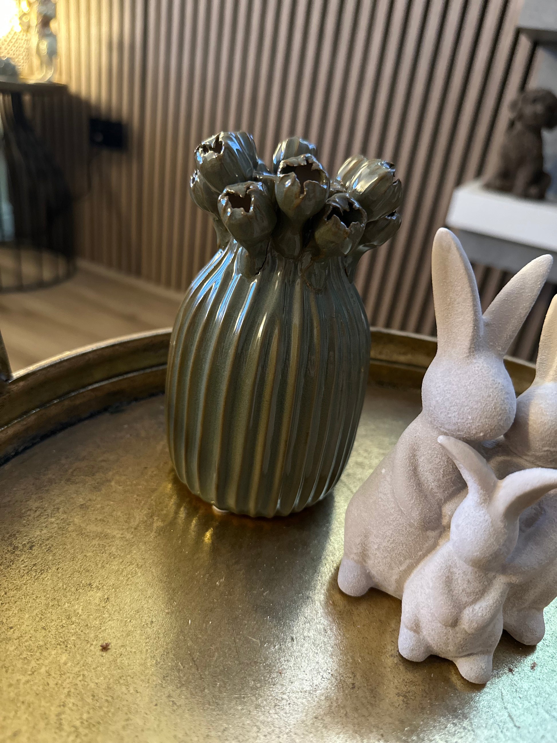 This exquisite porcelain vase, measuring at 15cm in height, features a stunning green seed head applique. The perfect addition to any home decor, this vase effortlessly combines functionality with artistic beauty. Bring a touch of nature indoors and elevate your space with this elegant vase.