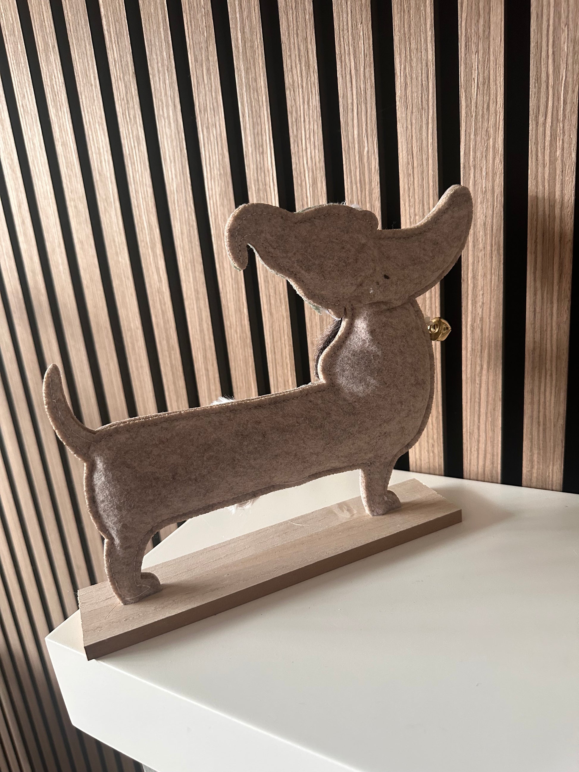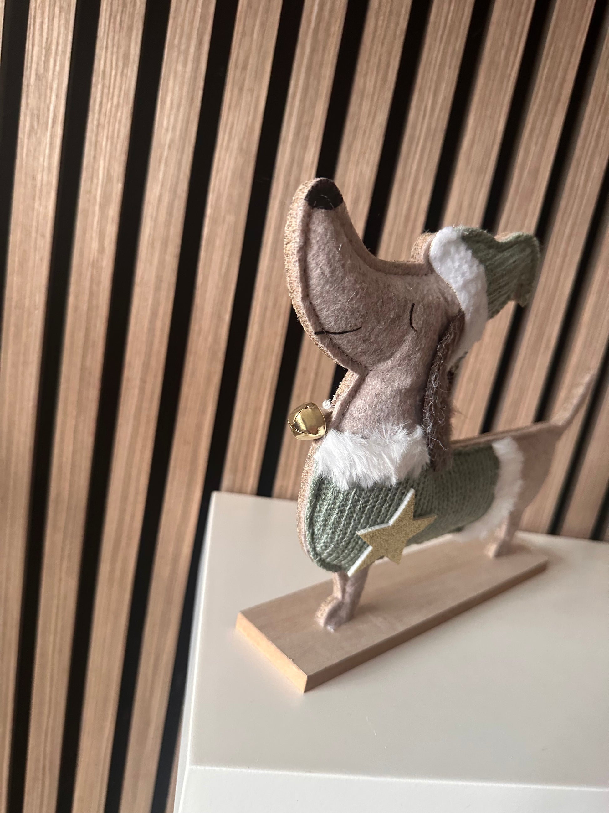 Add a touch of whimsy and warmth to your holiday decor with our Wooden Sausage Dog Christmas Decor! Measuring 28/29x5x22/25cm, this charming piece is handcrafted and painted for a unique and rustic look. Bring joy and cheer to your home this season with this adorable decoration.